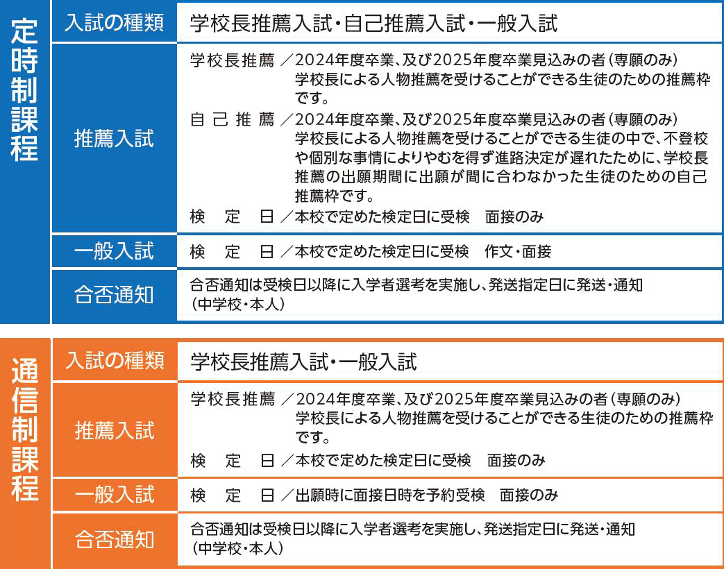本校は、県内私学では唯一の定時制課程と通信制課程を持つ単位制総合学科の高等学校で、両課程共3年間での卒業が可能です。