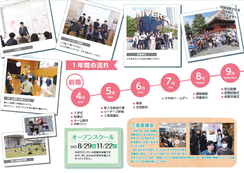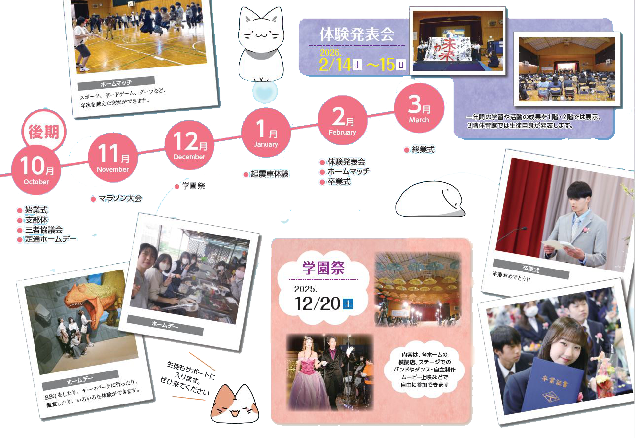 | 後期 | 10月 | 入学式・始業式・オープンスクール | 入学式・始業式・オープンスクール |